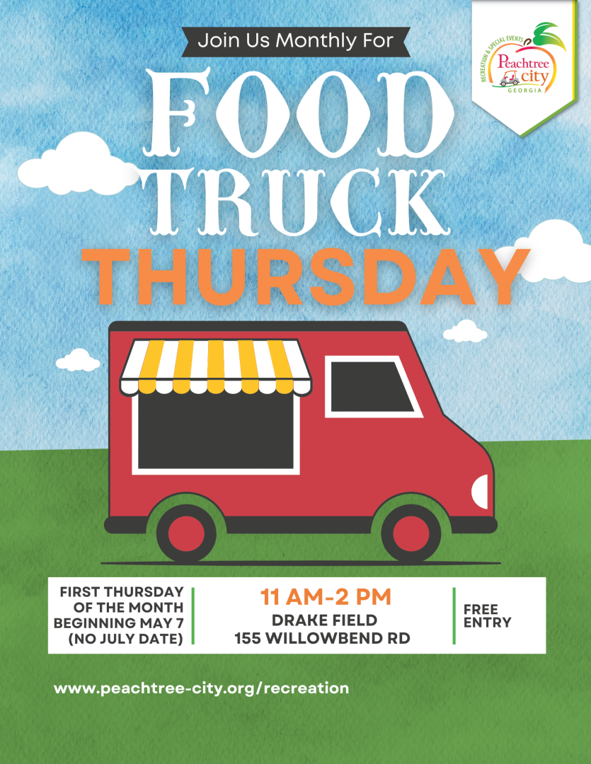 Our annual Food Truck Thursday series is back! Join us starting Thursday, May 7, 2026, and enjoy delicious eats once a month through November 5, 2026. Come grab lunch from a variety of local food trucks and enjoy the beautiful surroundings of picturesque Drake Field. It’s the perfect midday break—great food, fresh air, and a fun community atmosphere! (No July date)